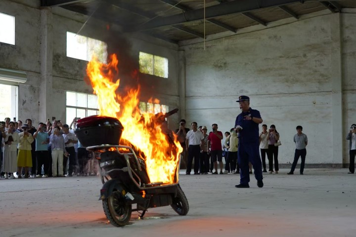 “電動自行車一旦短路,30秒就能產(chǎn)生明火,100秒就足以奪人性命。”配合著消防宣教員劉瑋的講解,放在倉庫內(nèi)的廢舊電動自行車正在熊熊燃燒,升起的黑煙迅速遮蓋了整個倉庫頂棚,幾十秒的時間里,倉庫內(nèi)能見度迅速降低,濃密的煙塵、刺鼻的氣味讓現(xiàn)場員工紛紛捂住了口鼻。日前,在贛州德隆樹脂涂料有限公司空置倉庫內(nèi),劉瑋在開展教學(xué)。“光講理論效果有限,必須用‘如我在場’的體驗式教育,讓員工現(xiàn)場感受火場危險。”他一邊講解電動自行車火災(zāi)預(yù)防知識,一邊組織員工進(jìn)行真煙真火逃生演練,通過換位思考強化安全意識。